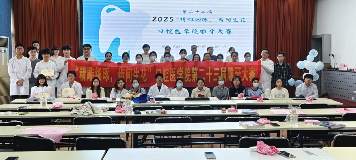 4月27日,学院第二十二届“精雕细琢·齿间生花”雕牙比赛在健行楼举办。院党委副书记胡鹏,口腔解剖教研室主任吴明月出席活动。