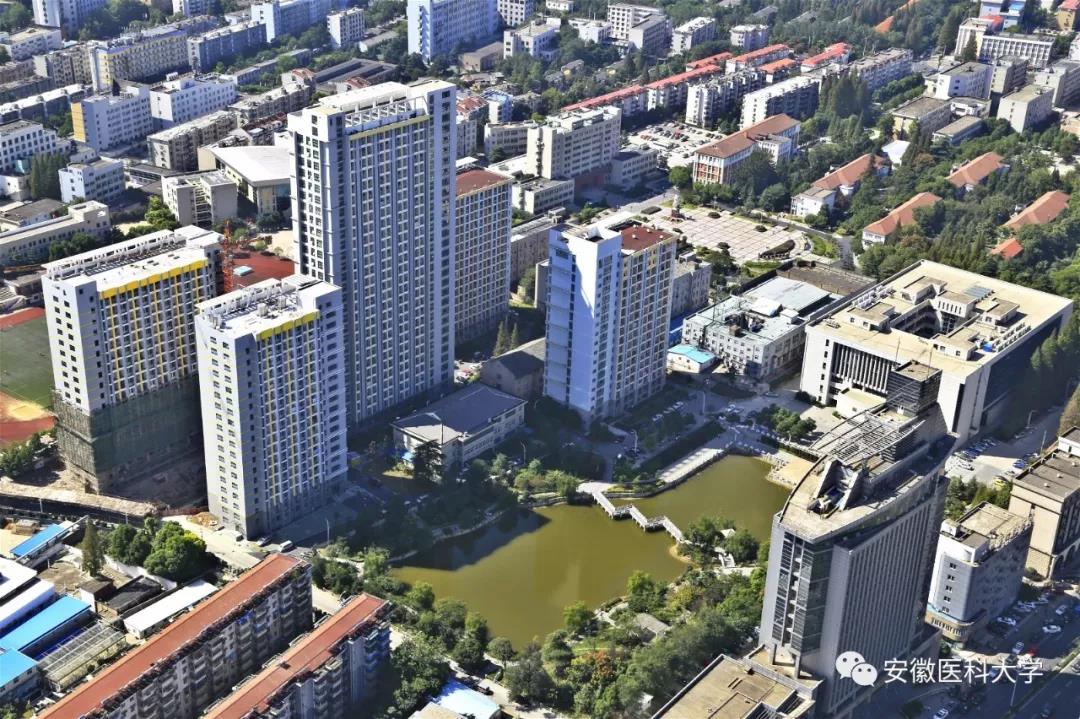 1951年东南医学院奉皖北人民行政公署的指示,从怀远迁到合肥,在德胜门外东南岗高地约五百亩进行校舍建设,全校师生热火朝天地开始了新校区的建设,计划分三期施工,第一期完成250张床位的附属医院和隔离病室,二期完成前期的医学实验馆、教室、水塔、师生宿舍和饭厅,三期筹建图书馆、大礼堂、总办公室和学生宿舍。