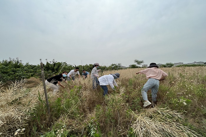 小满已过,夏日炎炎。一个小时的车程,支部成员来到了长丰县陶楼农场。下了车,领了农具,宣布规则,分配任务,接下来就到了大家“八仙过海,各显神通”的时刻。搭灶台、生炉子、割油菜、打菜籽、摘樱桃……每位成员都撸起袖子、干劲十足,享受着劳动带来的乐趣和启迪。