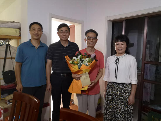 炎炎夏日,酷暑难耐。8月25日下午,院党委书记王润玲、院长何家才,副调研员吴卫顶着烈日来到生病出院的政务区门诊部主任吴明月老师的家中,真诚地表达了问候,并送上了鲜花和慰问费。