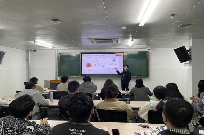 此次讲座主要分为两个部分:一是流式原理及其应用介绍;二是流式细胞术实验设计。讲座从流式细胞仪的基本原理、流式结果解读、流式实验设计、抗体的选择等方面进行讲解:首先认识并熟悉流式细胞仪工作原理,到自行设计流式实验,看懂流式结果,为获得好的实验数据做好准备,现场学术氛围浓厚。讲座最后环节,主讲人为在场同学详细解答各自的认知疑点及各课题实验中遇到的实际困惑。