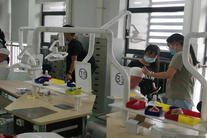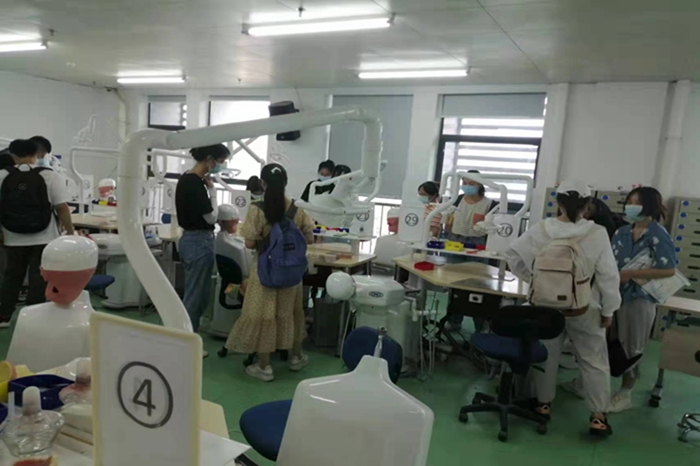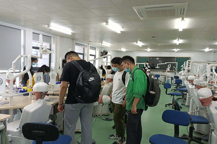 研究生会成员带领22级专硕新生参观了校园,向大家详细介绍各教学楼、实验楼的位置,学校各类生活资源的使用方法、出行方式等校园生活必备知识,同时带领新生参观口腔教学实验室,参观学习实验室设备及历届优秀学员的优秀作品。最后,新生在迎新工作老师的指导下有序完成了入学体检,至此22级专硕研究生迎新活动落下帷幕。