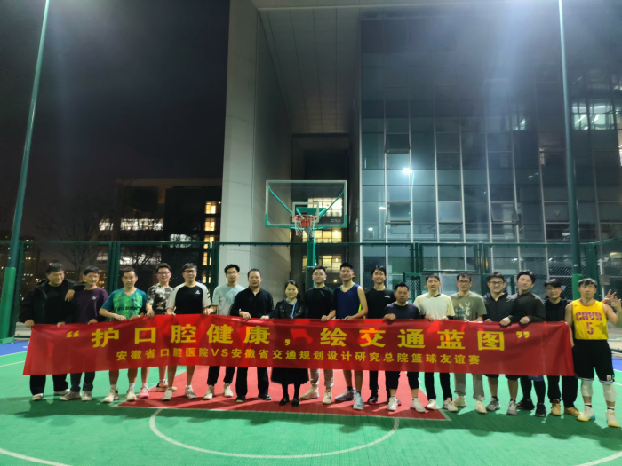 3月20日晚,色色啦 与安徽交通规划设计研究院在设计院新区篮球馆联合举办“护口腔健康 绘交通蓝图”主题篮球友谊赛。此次活动旨在通过体育竞技深化院企交流,丰富职工文体生活。