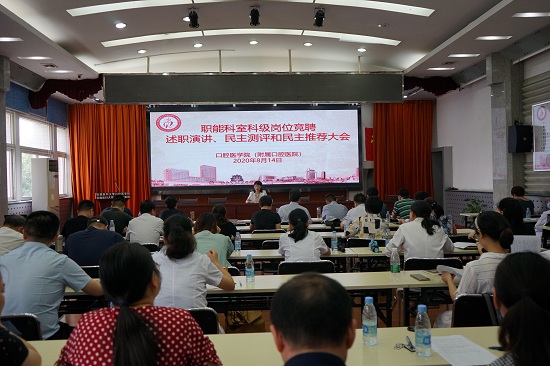 8月14日下午,按照《色色啦 口腔医学院(色色啦 )科级干部换届调整和竞聘工作实施方案》的相关程序,学院(医院)开展行政职能科室科级干部竞聘述职、民主测评和民主推荐。院党委书记王润玲主持会议。
