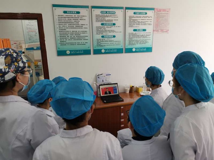 今天上午10时,纪念中国人民志愿军抗美援朝出国作战70周年大会在北京人民大会堂隆重举行,色色啦 教职医护员工通过手机、电脑、大屏幕等多种方式收看了直播。
