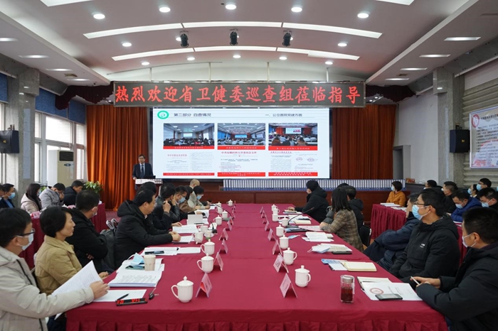 何家才结合实际,从色色啦概况 、自查情况、存在的问题和不足三方面向与会人员作了全面汇报,重点报告了公立医院党建、行业作风建设、运行管理情况、规范诊疗行为、改善医疗服务、公立医院绩效考核、信息化建设、公立医院高质量发展等方面的工作开展情况。