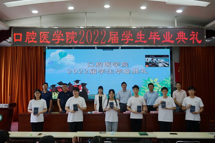 何家才寄语同学们要青春不毕业,始终勇于担当、砥砺前行,将个人理想融入国家发展伟业,让个人梦与中国梦同频共振,为助力健康中国、健康口腔贡献力量;要梦想不毕业,紧跟学科前沿,始终潜心修学、知行合一,不断提高综合素质,在医学创新中不断突破难题和困境,积极参与并引领现代医学的变革与发展;要医德不毕业,恪守“敬佑生命、救死扶伤、甘于奉献、大爱无疆”的信条,积极践行安医精神,努力成为堪当大任的时代新人和栋梁之才。