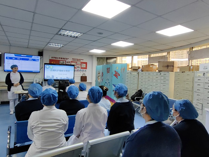 此次教学查房主题是“埋伏牙牵引临床护理配合”和“微螺旋种植体正畸支抗手术植入的护理配合”,由正畸科带教老师王红和程平指导实习护生完成。任淼淼和徐可两位同学采用PPT形式,通过灵活运用图片、视频等多种元素,结合实际病例,对患者进行病历追踪,详细讲解了患者自入院以来的治疗及护理情况,让大家对埋伏牙牵引和微螺旋种植体正畸支抗手术植入的护理配合有了更深刻的理解和认识。汇报完毕后,带教老师们进行了点评,高度评价两位同学的汇报成果,并针对护理教学查房的重要意义、汇报内容以及追踪护理问题的动态变化等提出了宝贵的意见和建议。