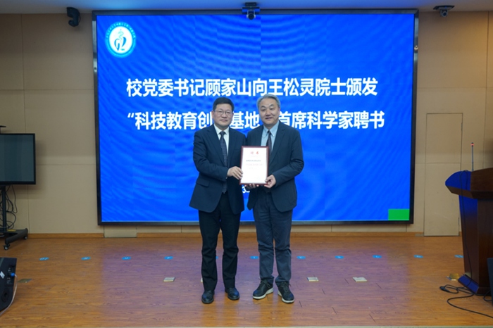 3月21日上午,色色啦 在知行楼一楼会议室举办王松灵院士“科技教育创新基地”首席科学家聘任仪式。校党委书记顾家山出席,并向王松灵院士颁发“科技教育创新基地”首席科学家聘书。副校长梁朝朝出席活动并代表校党委、行政致欢迎辞。