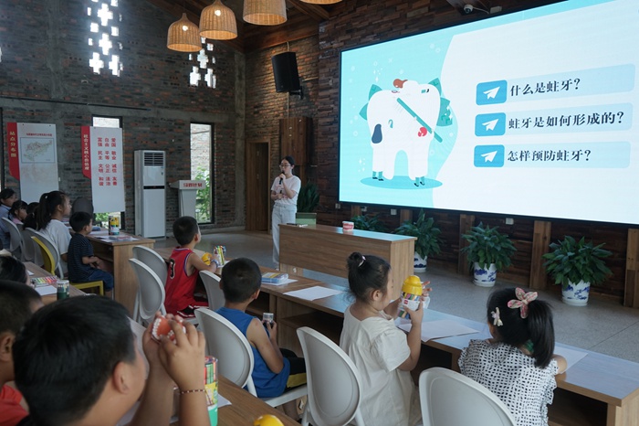 助力“白色”健康,筑牢良医之梦。“我滴芽”服务队充分发挥专业优势,以宣讲、科普等形式,开展了百余场生动有趣的“爱牙护牙小课堂”,通过简单易懂的语言描述,向人民群众科普如何正确刷牙、护牙等口腔健康保健知识,并进行走访、问卷调查等工作,将“思政大课堂”外延拓宽在祖国大地。与此同时,依托医院的资源和力量,服务队与临床医生们一同下沉到基层开展口腔义诊服务,为当地居民提供专业的口腔健康咨询和检查,将专业所长融入到乡村振兴与健康中国建设中,有效促进思政教育理论与实践相结合,充分发挥志愿服务的思政育人功能。