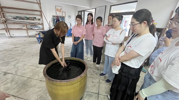 深化“彩色”美育,筑牢文化之梦。中华文化源远流长、极具特色,既是历史发展的见证,又是民族文化的延续。“我滴芽”服务队聚焦红色文化、扎染文化、水利文化和非遗文化,走进寿县安徽第一面党旗纪念园,重温峥嵘岁月,汲取奋进力量;走进杨庙马郢村,亲身体验传统扎染艺术,感受传承千年的传统文化;走进淠史杭工程展览馆,浏览着一件件记载着淠史杭工程的展品,深刻领悟熠熠生辉的淠史杭精神。与此同时,服务队在暑期社会实践过程中教授小朋友传唱黄梅戏、练习打太极,以新形势新思路新做法助力非遗文化传承,以文化人、以美育人。
