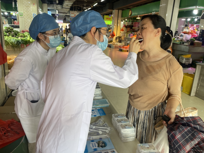 炎热的天气并未阻挡医护人员的热情与居民们的参与。活动现场,医护人员们耐心地为居民们解答各类口腔疾病相关问题,细致地指导大家正确刷牙的方法,并为居民们测量血压。诊疗结束后,医护人员还贴心地叮嘱居民们要养成良好的口腔健康生活习惯以及科学健康的饮食方式。