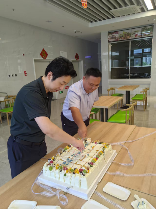 中午,慰问活动在高新总院职工食堂温馨举行。医院精心定制的节日蛋糕格外引人注目,纯白的奶油象征着医者纯洁高尚的职业操守,蛋糕上“德馨于行 技精于勤——祝医师节快乐”的字样熠熠生辉,传递着对白衣天使最诚挚的敬意。徐文华与大家共同切开这份承载着祝福与感恩的甜蜜礼物,现场欢声笑语,其乐融融,医者仁心的精神在这一刻得到了最美的诠释。