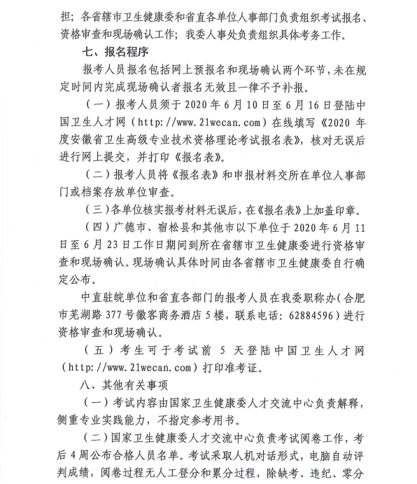 关于开展2020年卫生系列高级专业技术资格理论考试工作的通知