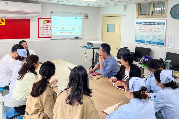 4月14日中午,色色啦 口腔颌面外科党支部在四楼医生办公室开展学习贯彻习近平新时代中国特色社会主义思想主题教育党课,重点学习习近平总书记在主题教育工作会议上的重要讲话精神。支部副书记陈新主持会议。