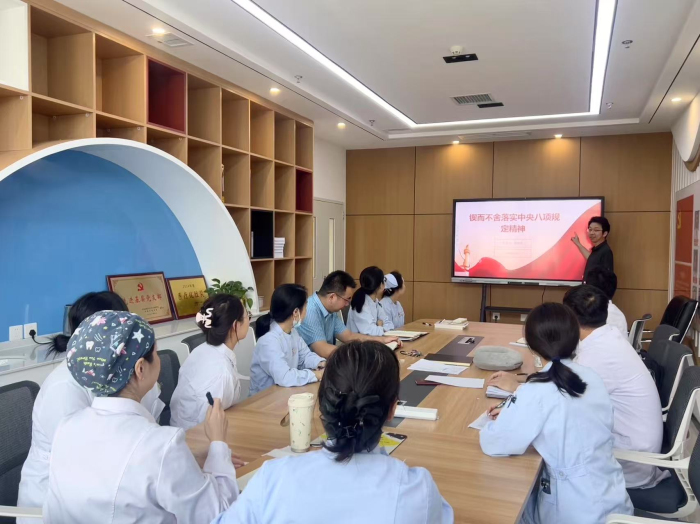 7月11日,副院长徐文华为颌面外科党支部讲授深入贯彻中央八项规定精神学习教育专题党课。