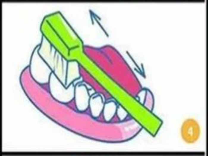 3.接着是牙齿的内侧面,也是使用同样的刷法。