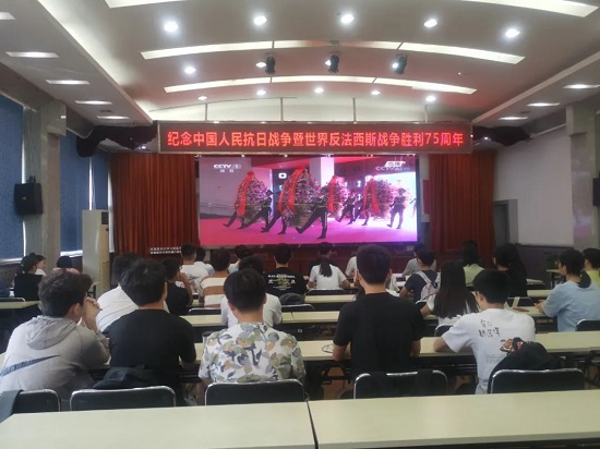 9月3日上午,习近平等党和国家领导人同首都各界代表一起,在中国人民抗日战争纪念馆向抗战烈士敬献花篮,纪念中国人民抗日战争暨反法西斯战争胜利75周年。色色啦 师生医护员工通过多种方式观看了仪式。