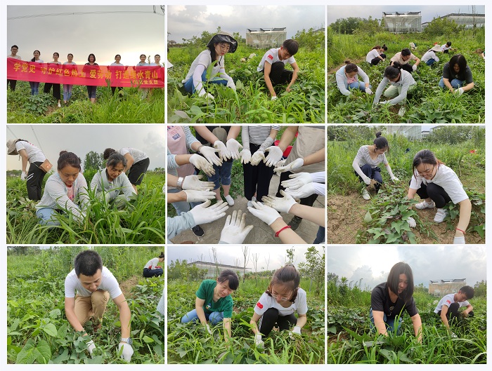 党史教育不仅要浸润到思想上,更要体现在行动上。为深化党史教育,丰富活动内涵,体验更真实的新农村,在听完马郢村史讲解后,他们还参加了农场劳动,在山芋地里开展除草活动。虽然“汗水与尘土齐飞”,但是他们脸上都洋溢着快乐的笑容。