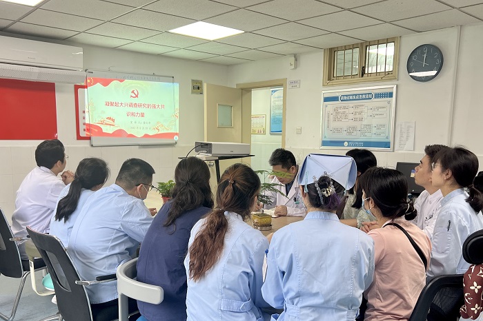 5月29日中午,色色啦 副院长徐文华在病房四楼医生办公室以“凝聚起大兴调查研究的强大共识和力量”为题,为颌面外科支部全体成员讲授主题教育系列专题党课。