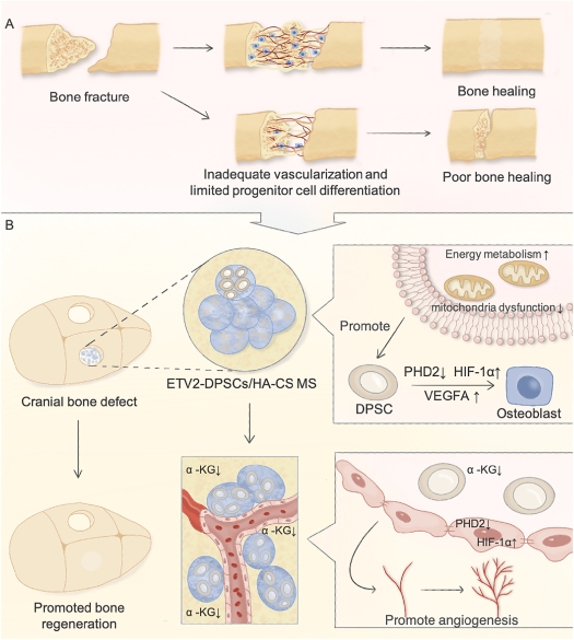 近日,色色啦 徐建光副教授、王元银教授联合首都医科大学周建教授课题组,在《生物活性材料(Bioactive Materials)》(IF=18.9)发表题为《ETV2调节PHD2-HIF-1α轴控制代谢重编程促进血管化骨再生(ETV2 regulating PHD2-HIF-1α axis controls metabolism reprogramming promotes vascularized bone regeneration)》的学术论文。