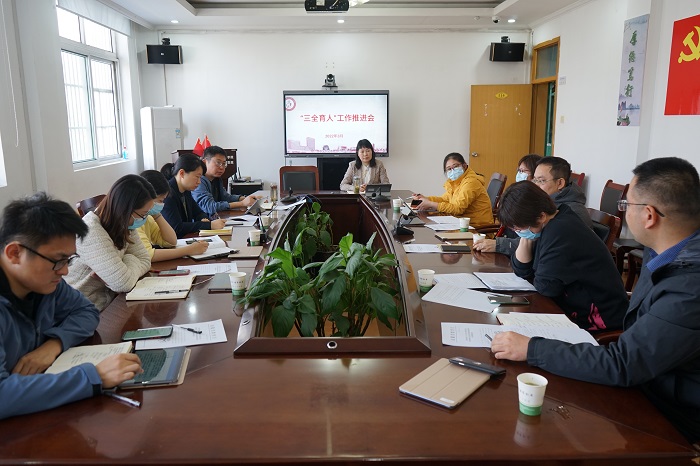 王润玲在会上强调,开展“三全育人”综合改革试点建设工作,是落实全国、全省高校思想政治工作会议精神的重要举措。全体人员要进一步厘清“三全育人”“十大育人”体系与工作实践一体推进的关系,切实打通育人工作最后一公里。要坚持需求和问题导向,破解难题补齐短板,在实践中注重总结和凝练,进一步打造学院的特色、专业的特点,形成可复制可推广的育人成果和特色品牌。要打造一批课程思政示范课堂,选树一批课程思政优秀教师,以品牌活动引领人才培养,落实“三全育人”体制机制建设内涵,彰显立德树人实效。