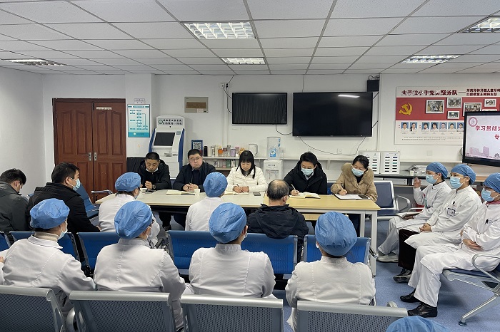 王润玲详细了解了现阶段该科室的工作情况,充分肯定了修复科近年来在党建、医疗、教育、科研等各项工作中取得的不俗成绩,高度赞扬了修复科团队在科研方面取得的成果。她指出,科室全体人员要把学习宣传贯彻党的二十大精神同工作实际结合起来,坚决把党的二十大提出的新思想、新理念、新论断贯彻落实到医教研工作中,推动党的二十大精神在修复科落地生根、见行见效。在广泛听取科室人员意见和建议后,她针对科室提出的问题,现场能够解决的当场给出办法,对于不能及时解决的问题也做了记录以便后续研究相应解决方案,并督促相关职能部门强化管理职能,密切与临床部门的联系,为临床工作提供有力保障。