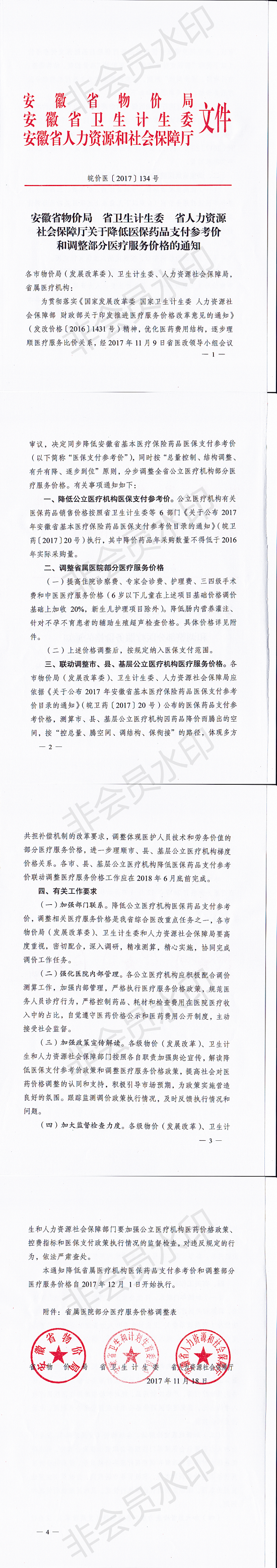 皖价医〔2017〕134号调价文件附件