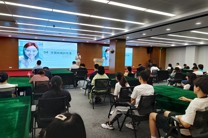 义诊现场,色色啦 专家为200余名顺丰职工进行免费口腔检查,询问日常牙齿状况,认真分析口腔问题,根据职工口腔问题给出针对性意见及治疗建议,并现场发放200余份宣传资料和口腔护理产品,帮助职工养成良好的口腔健康习惯。在口腔健康大讲堂科普环节,专家们详细介绍了牙齿缺失、龋齿、牙龈出血、洁牙护齿方式等常见口腔问题及防治方法,考虑到义诊服务对象日常工作中存在颌面部受外伤的风险,专家们重点就颌面部及牙外伤的应急处理方法、牙脱位后如何保存离体牙齿等知识进行科普,并提醒职工拒绝嚼食槟榔,形成有益口腔健康的生活方式。