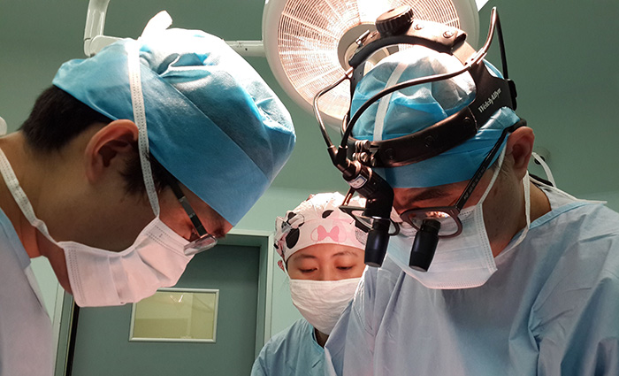 何国伟(右一)主刀做心血管手术